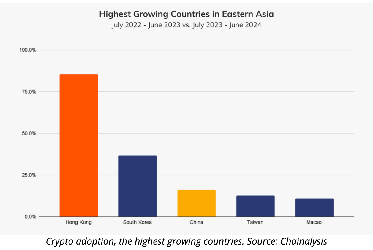 Stablecoin adoption continues to ramp up, putting pressure on fiat currencies across the globe. Particularly in countries with major inflationary pressures and currency devaluation, stablecoins offer a compelling alternative outside of traditional monetary networks. In East Asia, stables have captured a significant share of dominance. Highlighting this, Hong Kong has emerged as a leader in adoption, with a staggering 40% of the regions value received in stablecoins. The country has seen an 85% increase in crypto adoption YoY, taking first place in East Asia just ahead of South Korea.