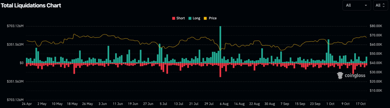 BTC fell just short of a double digit gain last week, climbing 9.8% and nearly retesting 2021 highs just above 69K for the first time since July. ETF’s added a staggering $2.1B, crossing the $20B milestone with the help of 6 consecutive sessions with net inflows. Liquidations totaled $220M, and volume saw its first notable jump on the weekly in nearly 3 months. BTC has since rejected just above $69,400 before dropping 2% in the Monday session following a shallow, market wide correction.