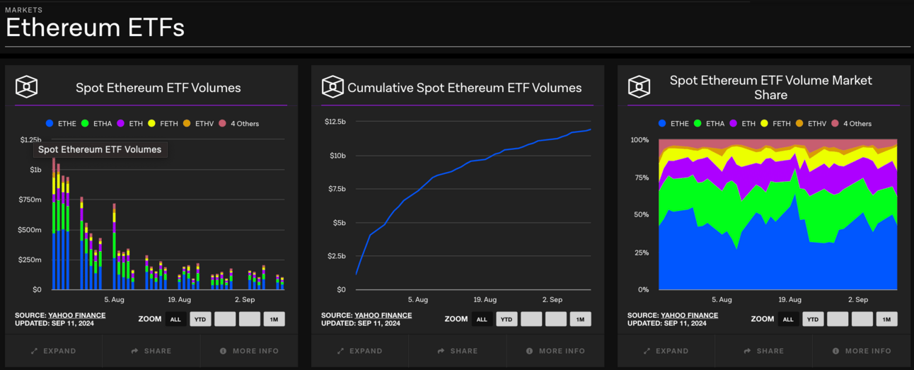 ETFs had a particularly rough week, recording the second highest week of outflows for crypto related products in 2024. BTC funds saw over $700M in net outflows, bringing the recent losing streak into its 8th consecutive session. ETH funds managed to slow the recent bleeding, however still recording nearly $100M in net outflows by week’s end. On top of having largely failed to attract the volume initially expected post approval, ETH ETFs have posted net outflows for the past 4 weeks. Underlining recent struggles, VanEck announced Friday it will be closing its ETH futures ETF (EFUT), citing issues with performance, liquidity, and overall investor interest.