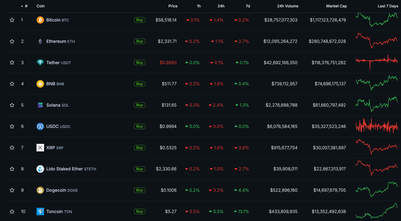 BTC/USD (BINANCE) O:57356 H:59844 L:52622 C:54981 -241879 (-4.21%) V:1.447K