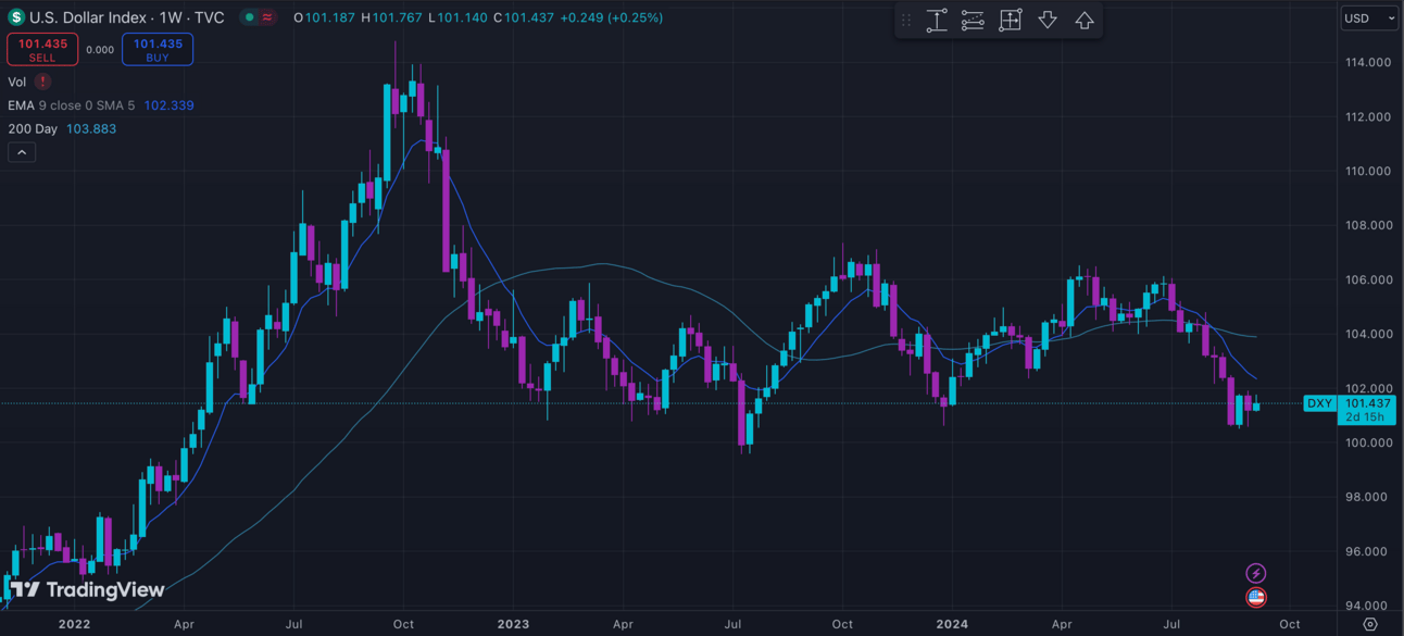 DXY O:101.733 H:101.917 L:100.583 C:101.188 -0.544 (-0.53%)