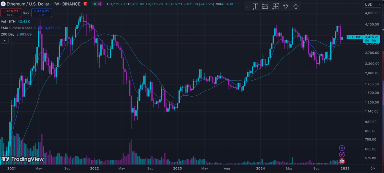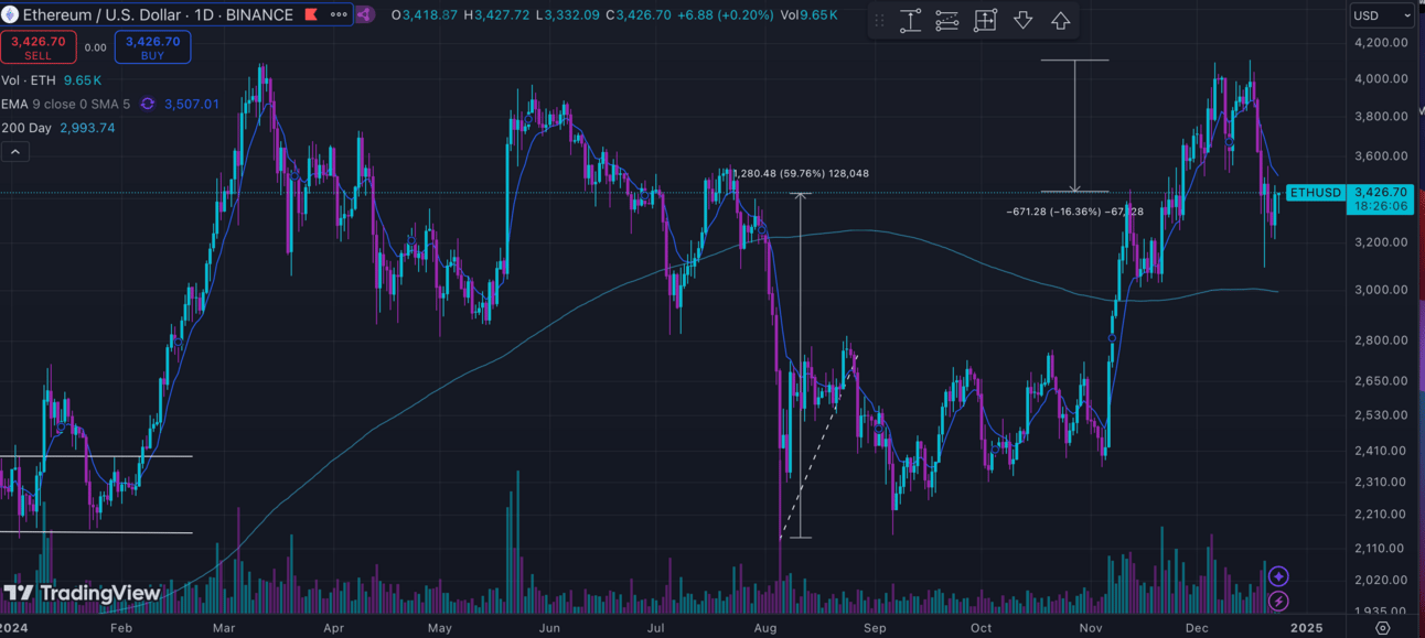 ETH/USD (BINANCE) O:3960 H:4106 L:3096 C:3279 -676.65 (-17.10%) V:324.54K
