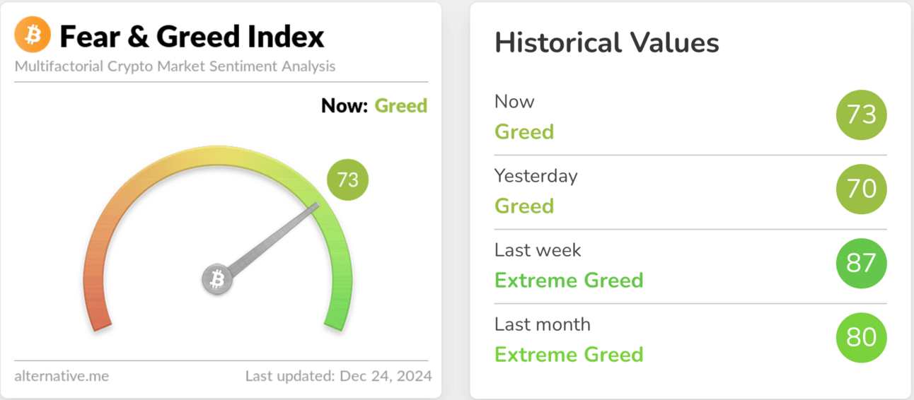 Looking at the technicals, last week’s profit taking recommendations have proven well advised. Despite missing out on BTC’s early week gains, we managed to protect capital throughout the correction that followed. We try our best not to penny-pinch our entries and exits, and corrections are to be expected considering the depth of BTC’s recent run. Looking south, a move below $92K (narrowly avoided twice since December’s open) would suggest further downside still in play likely worth avoiding. On the other hand, a return above $98K would open the door for another triple digit push, though tight stops and earlier targets will remain recommended in the interim.