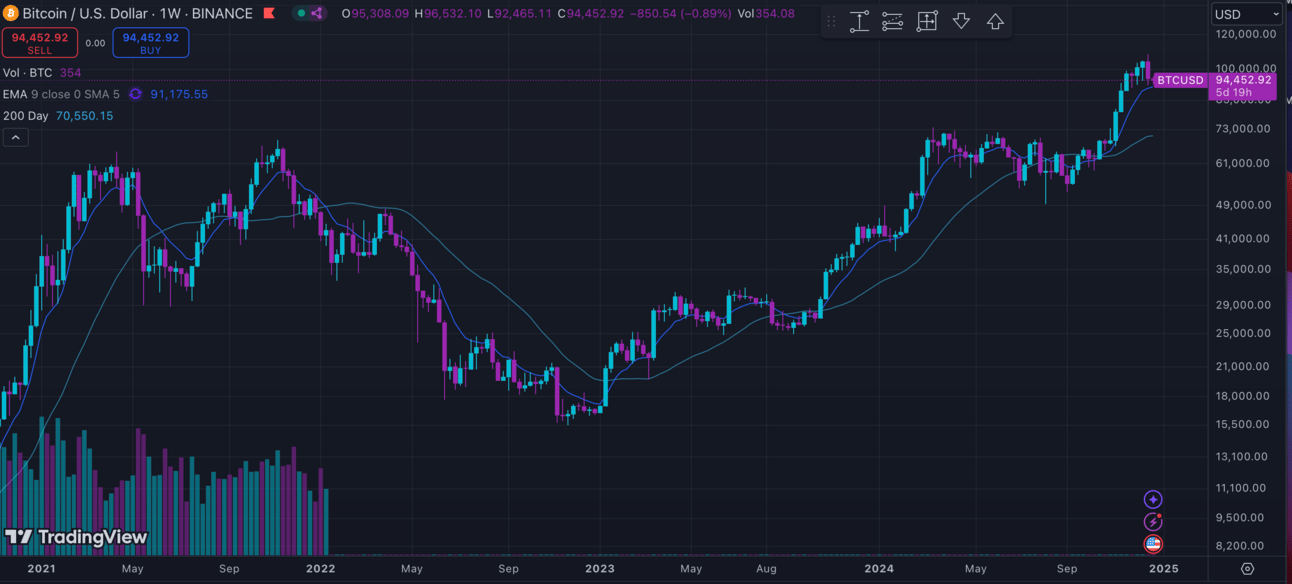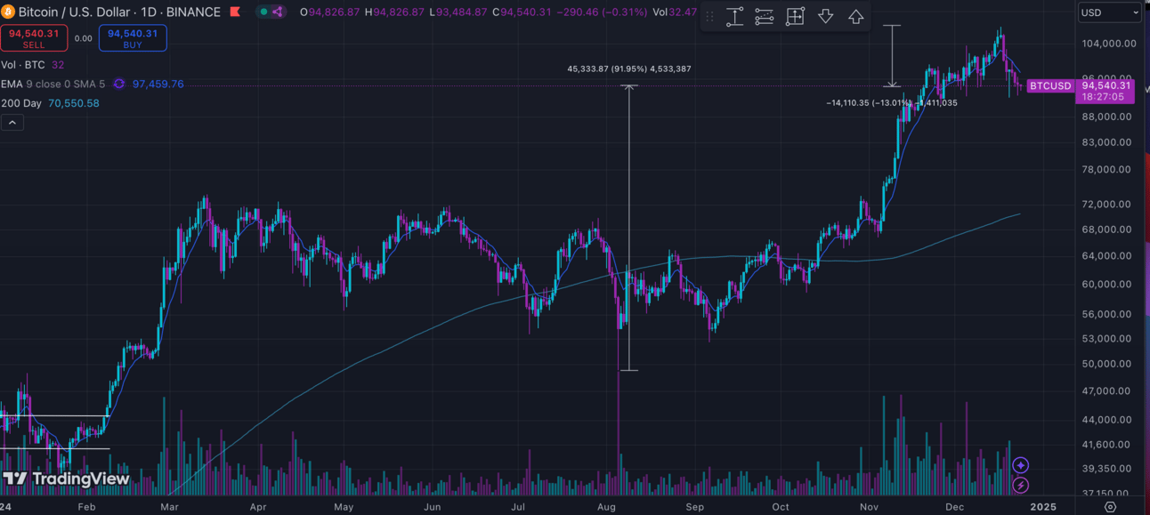 BTC/USD (BINANCE) O:104197 H:108230 L:92072 C:95303 -8878.03 (-8.52%) V:3.29K