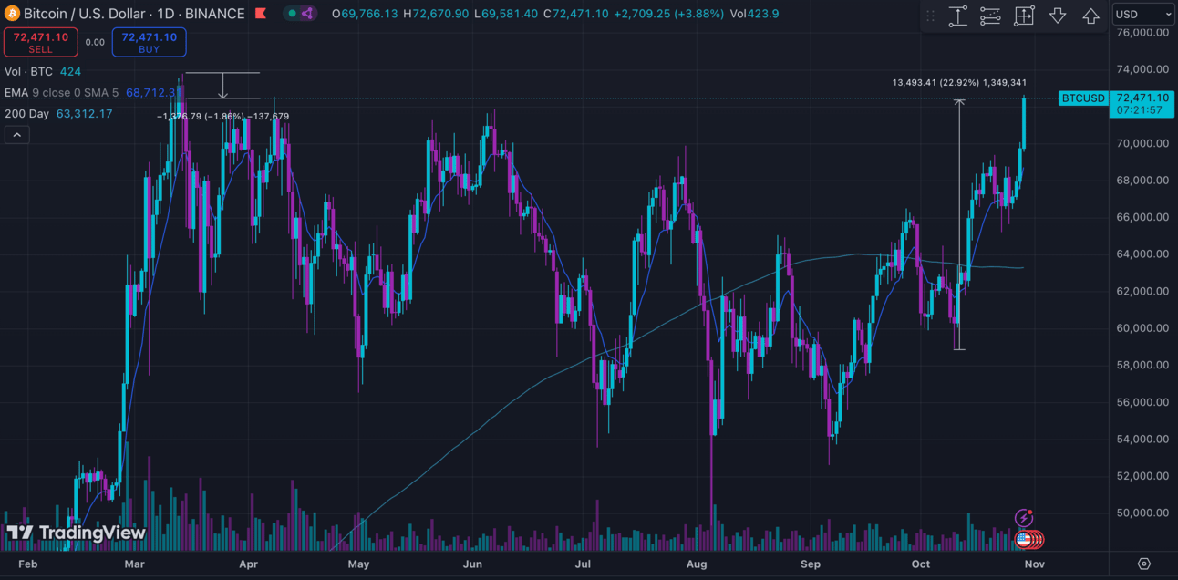 Bitcoin's rally continues, led by Binance exchange